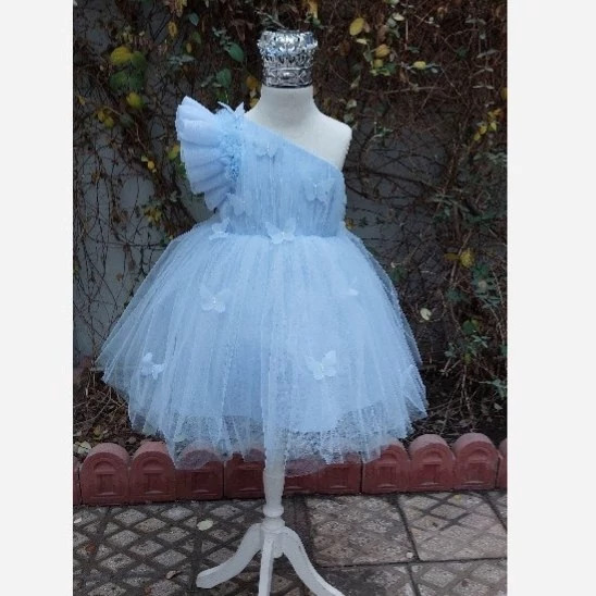 پیراهن مجلسی دخترانه مدل پروانه آبی