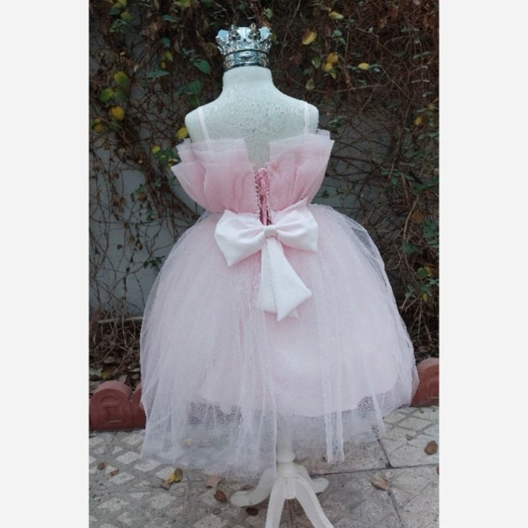 پیراهن مجلسی دخترانه مدل نازگل صورتی